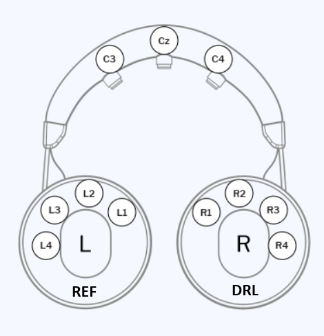 SMARTFONES are based on the positions of the cEEGrid electrodes, i.e. they are not built on the standard 10-20 system. All the electrodes are located in the area around the ear, plus 3 central ones (Cz, C3, C4).